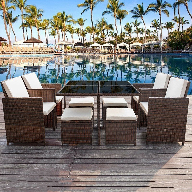 | P롤드S이즈: | 4x 의자 ((60x58x87cm) 4x 좌석 쿠션 ((50x48x5cm) 1x 테이블 (사각형: 110x44cm) 1xtempered glass ((DIA:110*0.5cm) |